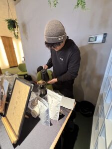 今回の内覧会では、長浜にある 「或る焙煎所」 さんがご来場くださり、挽きたてのコーヒーを提供していただきました。